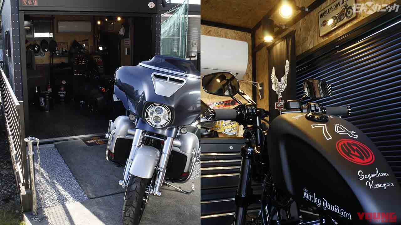 親子でハーレー2台を磨き込む こだわりの専用スペース獲得 デイトナガレージ ロッジ Webヤングマシン 最新バイク情報