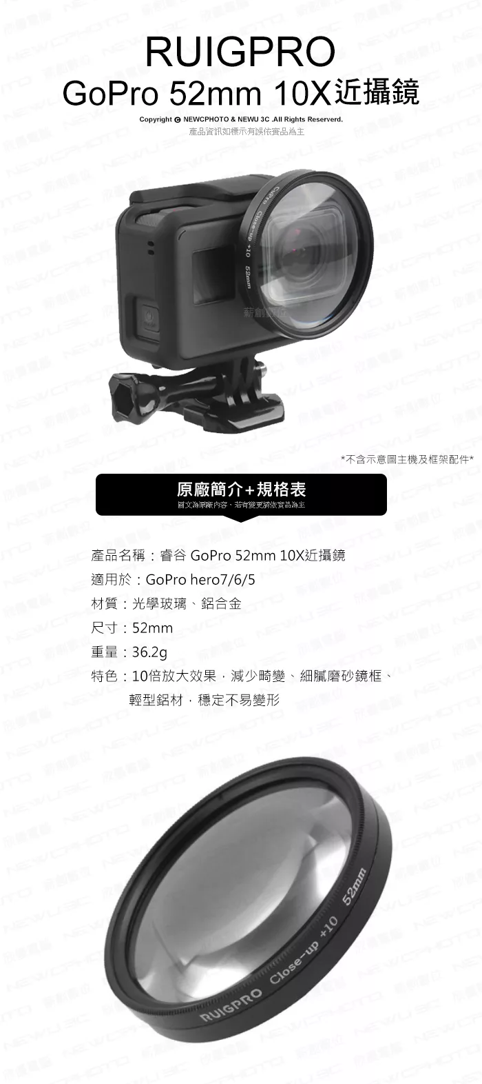 博客來 Ruigpro 睿谷gopro Hero 7 6 5 運動相機52mm 10x近攝鏡黑色