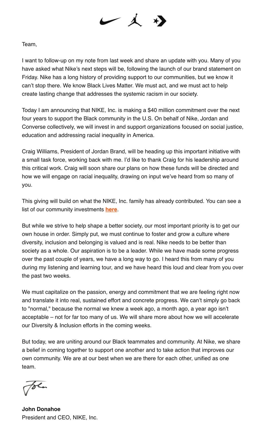 ナイキの最高責任者ジョン ドナホーが人種差別問題について声明を出す Hypebeast Jp