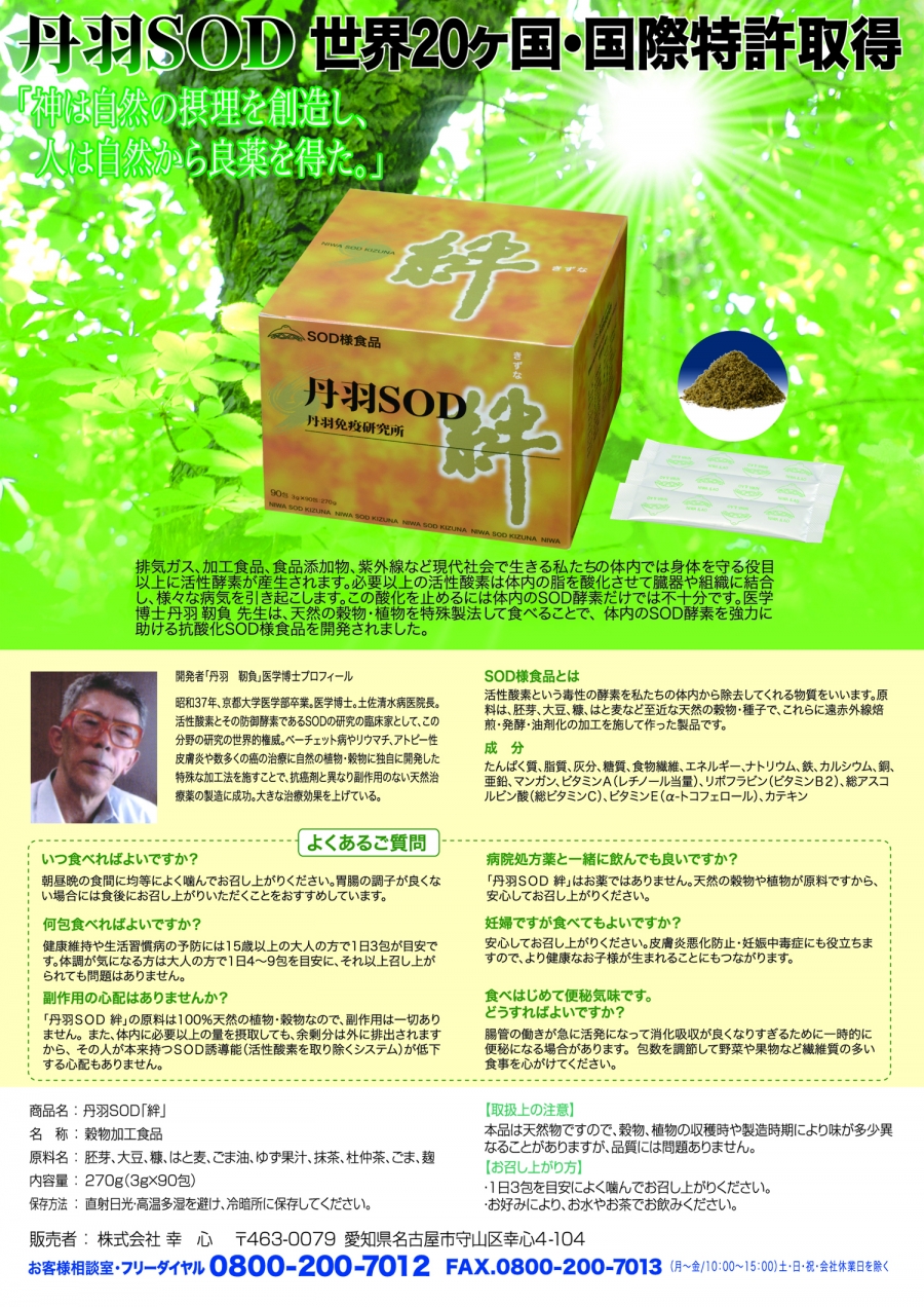 株式会社丹羽医学研究所 丹羽韧负 耕三 博士研发丹羽sod类食品sod皇家